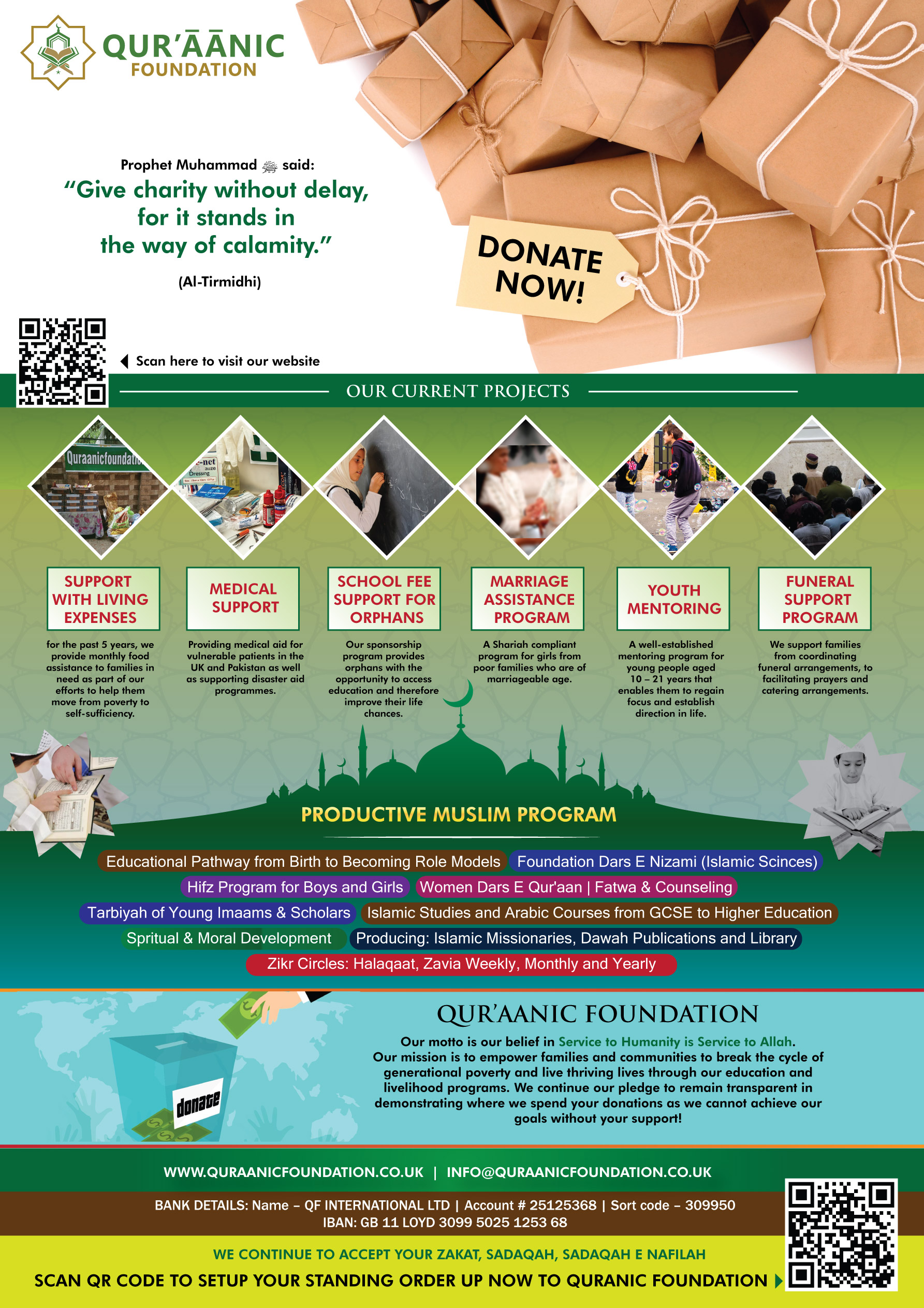 Qur’aanic Foundation spends all of its money directly or indirectly fighting the injustice of poverty.